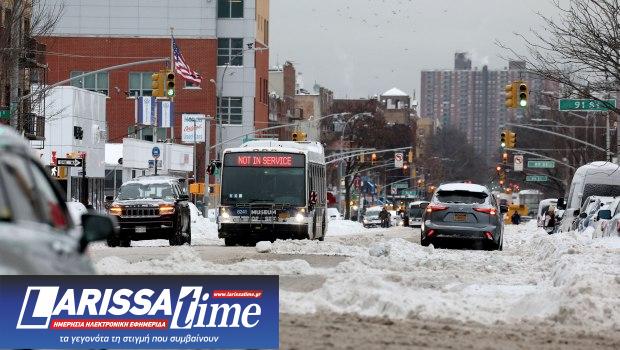Η Νέα Υόρκη έχει υποστεί το μεγαλύτερο μέρος της αναστάτωσης από τη χιονοκαταιγίδα, με 379 πτήσεις να ακυρώνονται και περισσότερες από 30 να έχουν καθυστερήσει στα αεροδρόμια JFK, LaGuardia και Newark.