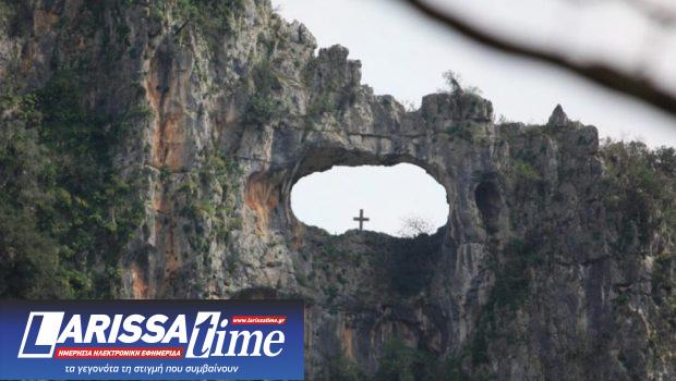 Η τεράστια τρύπα μέσα από την οποία διακρίνεται ένας σταυρός βρίσκεται καλά κρυμμένη μέσα σε ένα ειδυλλιακό τοπίο δίπλα στο ομώνυμο χωριό