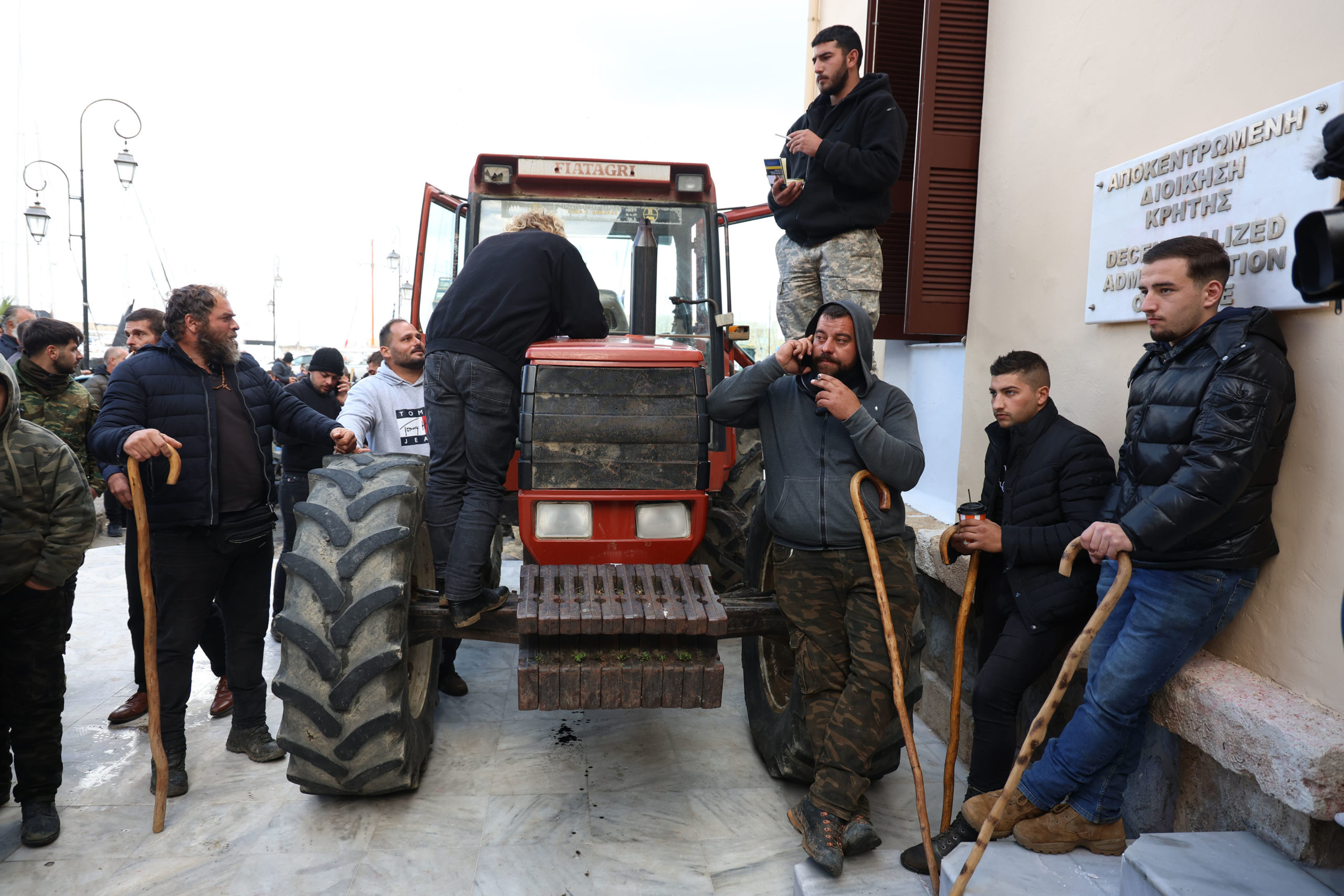 Υπό κατάληψη τελεί το κτίριο της Αποκεντρωμένης Διοίκησης Κρήτης, όπου μεταφέρθηκε η κινητοποίηση των αγροτών και των κτηνοτρόφων από το Ηράκλειο, το Ρέθυμνο και το Λασίθι.