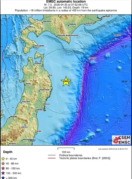 Σεισμός μεγέθους 7,4 βαθμών έπληξε περιοχή ανοικτά των βορειοανατολικών ακτών της Ιαπωνίας, μετέδωσε το NHK.