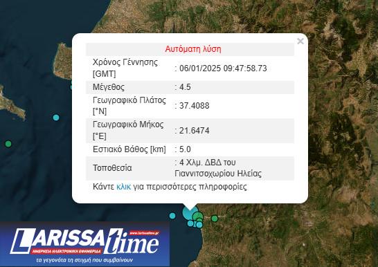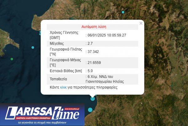 Το επίκεντρο του σεισμού ήταν 4χλμ ΒΔΒ του Γιαννιτσοχωρίου Ηλείας.