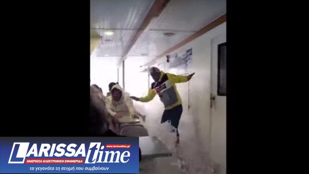 Το κύμα υψώθηκε τουλάχιστον μέχρι το πρώτο κατάστρωμα του πλοίου, όπως φαίνεται και σε βίντεο που τράβηξε κάποιος από τους επιβάτες με το κινητό του. Στα πλάνα διακρίνονται ορισμένοι εξ αυτών να παρακολουθούν πανικόβλητοι τα νερά να κατακλύζουν το φέρι μποτ κι άλλοι να σηκώνουν τα πόδια τους για να μη βραχούν.