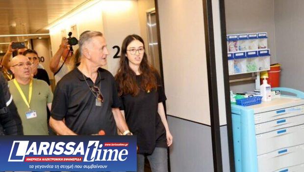 Λίγες ώρες μετά τη διάσωσή της, έπειτα από οκτώ μήνες ομηρίας στη Λωρίδα της Γάζας, η Νόα Αργκαμάνι έσπευσε σε νοσοκομείο του Τελ Αβίβ για να βρεθεί στο πλευρό της μητέρα της, η οποία είναι καρκινοπαθής τελικού σταδίου (στη φωτογραφία από Ichilov Hospital, επάνω, η Νόα φτάνει στο νοσοκομείο όπου νοσηλεύεται η μητέρα της).