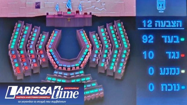 Το κοινοβούλιο του Ισραήλ ενέκρινε με συντριπτική πλειοψηφία το νομοσχέδιο που απαγορεύει τη δραστηριότητα της υπηρεσίας του ΟΗΕ για τους Παλαιστίνιους πρόσφυγες (UNRWA) στη χώρα, παρά τις αντιρρήσεις των ΗΠΑ και των Ηνωμένων Εθνών. Το κείμενο εγκρίθηκε με 92 ψήφους υπέρ και 10 κατά στην 120μελή Κνεσέτ σύμφωνα με το ΑΠΕ.