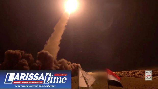 Σειρήνες ήχησαν σ’ όλο το κεντρικό Ισραήλ μετά την εκτόξευση πυραύλου από την Υεμένη, και πολίτες τραυματίστηκαν ενώ έσπευδαν να προφυλαχτούν στα καταφύγια (στη φωτογραφία αρχείου από Houthi Military Media/via Reuters, επάνω, εκτόξευση πυραύλου των Χούθι από τοποθεσία στην Υεμένη).