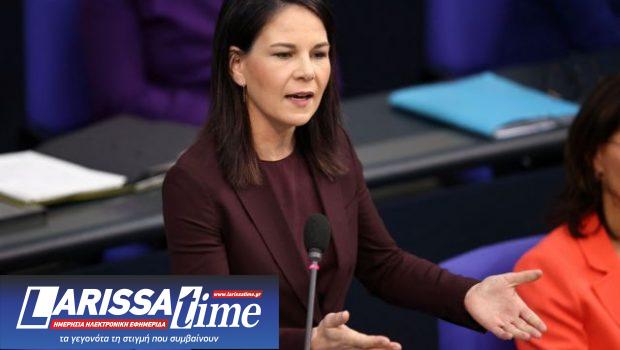 Η επικεφαλής της γερμανικής διπλωματίας Αναλένα Μπέρμποκ (φωτογραφία αρχείου, επάνω, από το Reuters/Liesa Johannssen) κάλεσε να επιβληθούν πιο σκληρές κυρώσεις στην Ισλαμική Δημοκρατία του Ιράν μετά την απευθείας και άνευ προηγουμένου επίθεση που εξαπέλυσε τη νύχτα του Σαββάτου προς Κυριακή εναντίον του Ισραήλ.