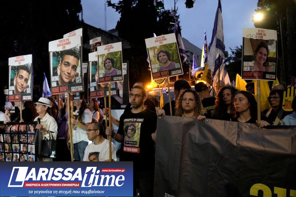 Ο κόσμος διαμαρτύρεται για την επέτειο ενός έτους από την επίθεση της Χαμάς στο Ισραήλ και ζητά την απελευθέρωση των ομήρων έξω από το σπίτι του πρωθυπουργού Μπενιαμίν Νετανιάχου