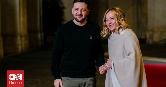 Η Ιταλίδα πρωθυπουργός Τζόρτζια Μελόνι συναντήθηκε το βράδυ της Πέμπτης (09/01) με τον πρόεδρο της Ουκρανίας Βολοντίμιρ Ζελένσκι, στο κυβερνητικό μέγαρο της Ρώμης Παλάτσο Κίτζι.
