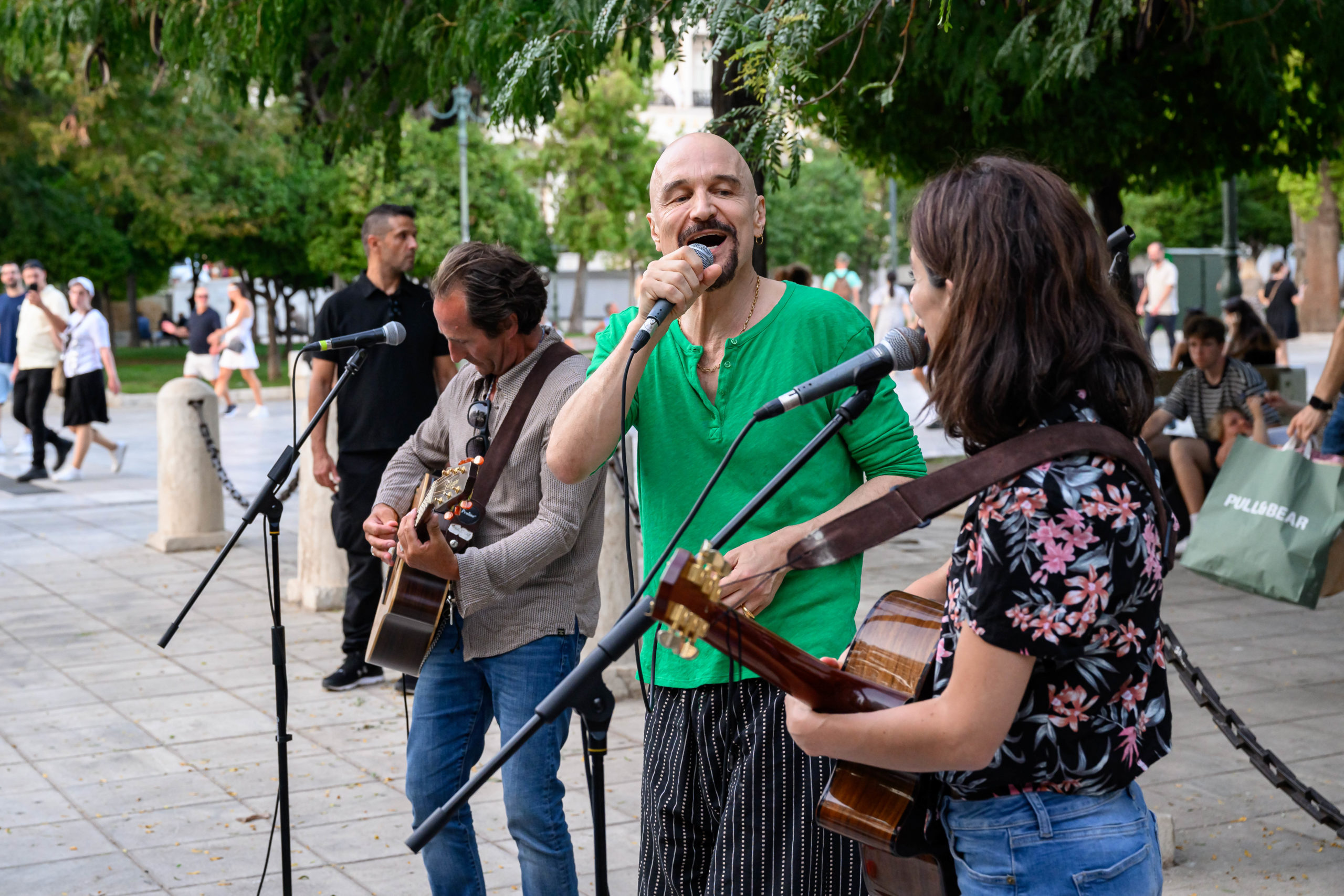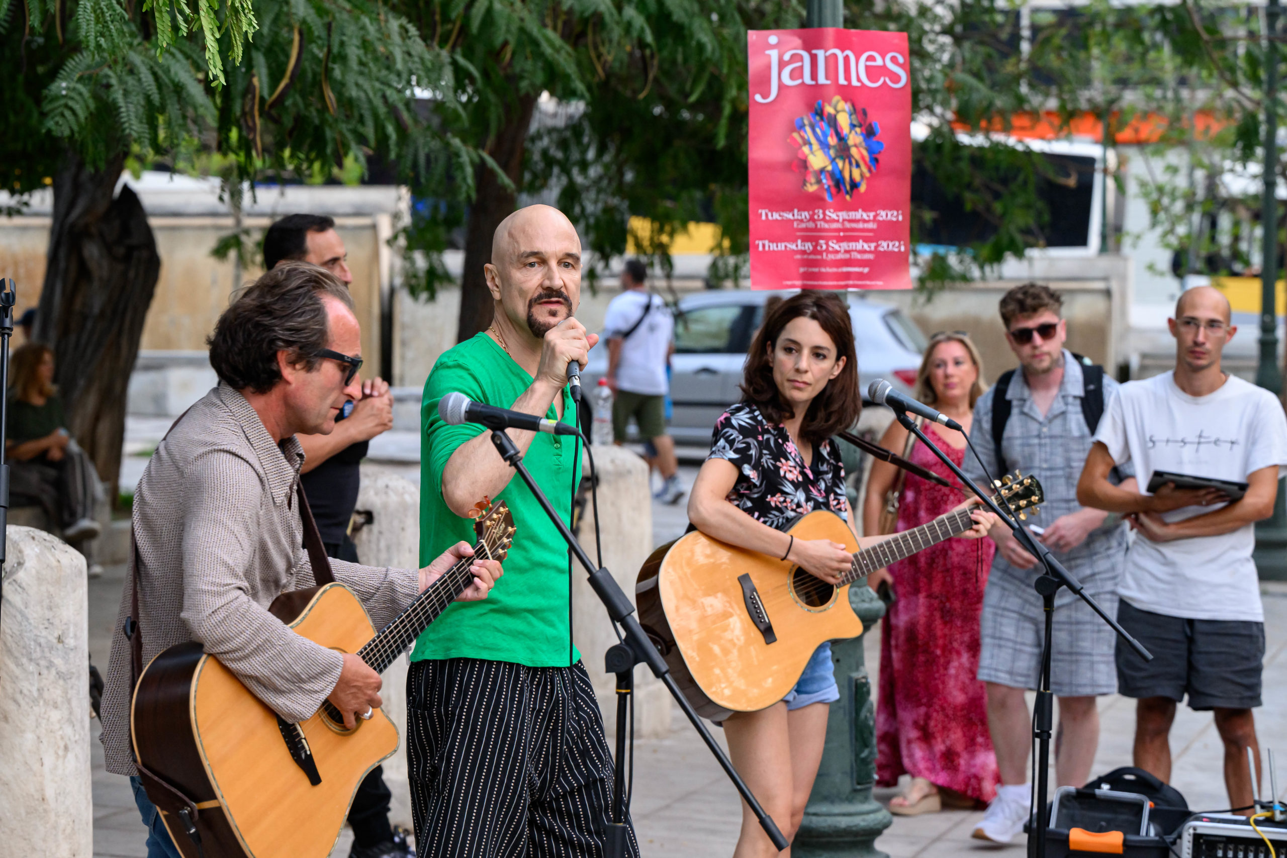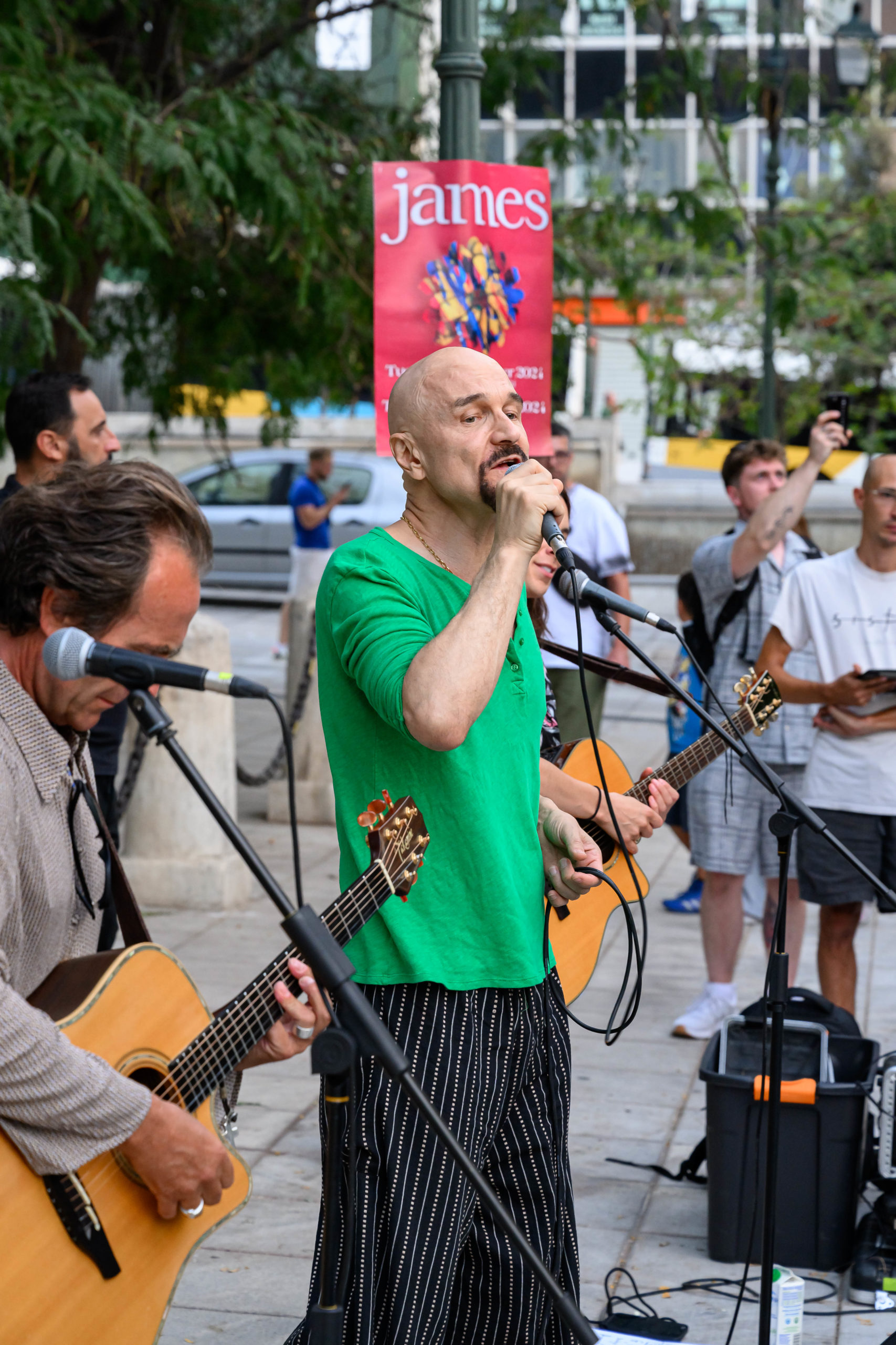 Το αγγλικό ροκ συγκρότημα James από το Μάντσεστερ, μια ημέρα πριν από την επίσημη συναυλία τους στο Δημοτικό Θέατρο Λυκαβηττού, έστησε μια pop-up mini συναυλία στο κέντρο της πόλης, για μια πρώτη γνωριμία με το αθηναϊκό κοινό.