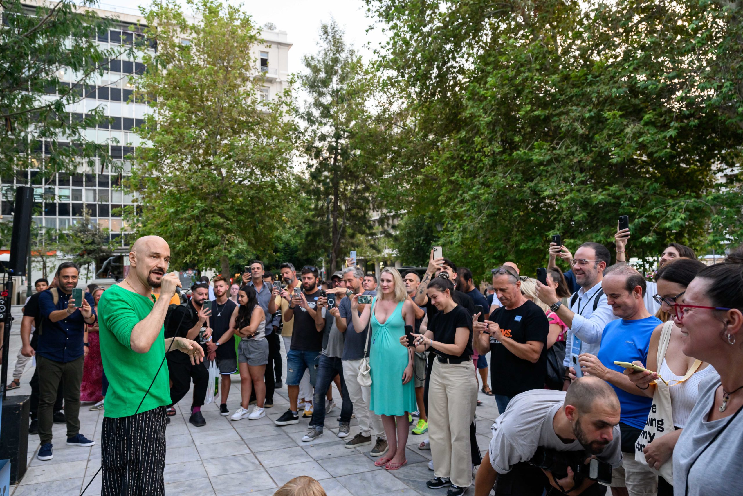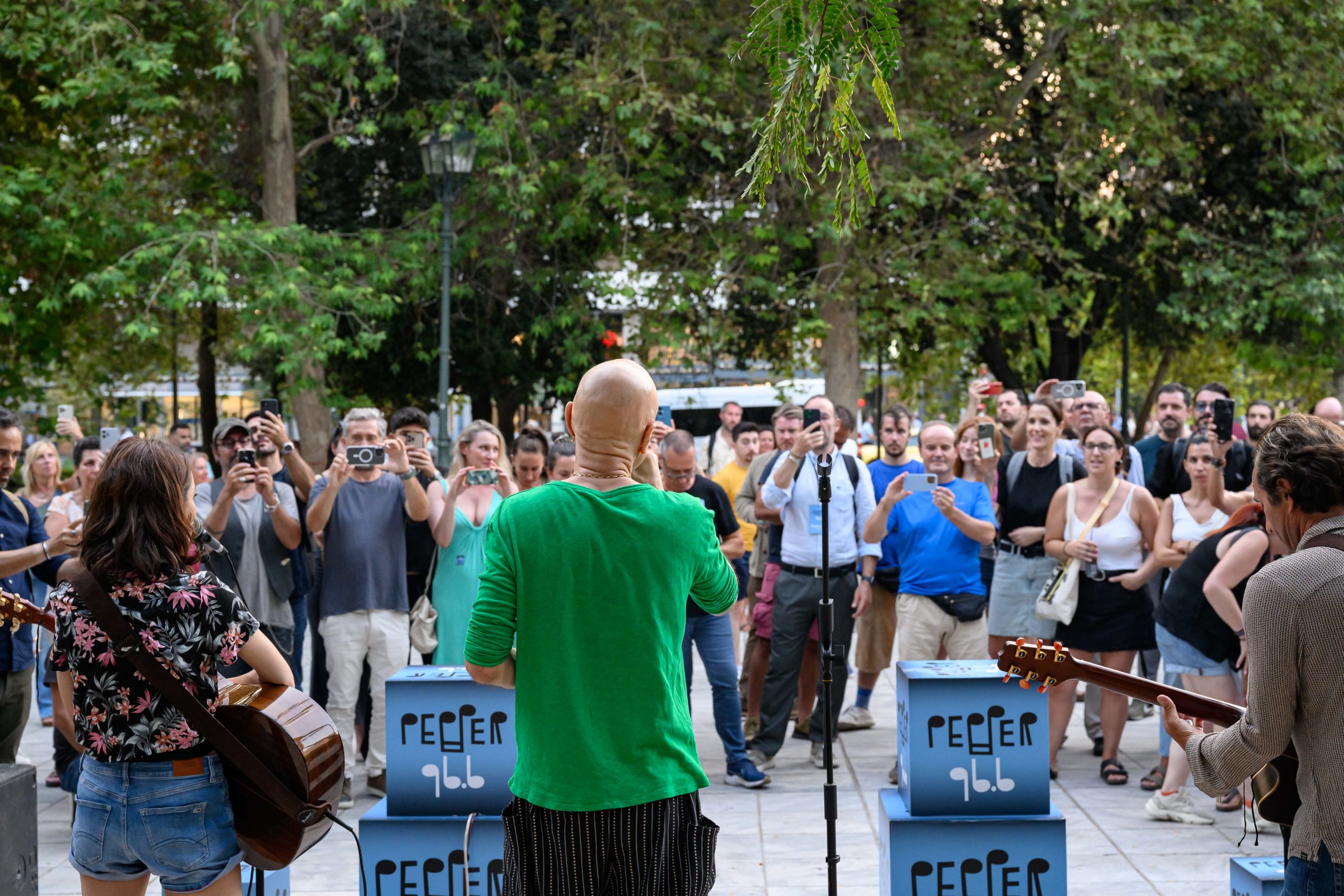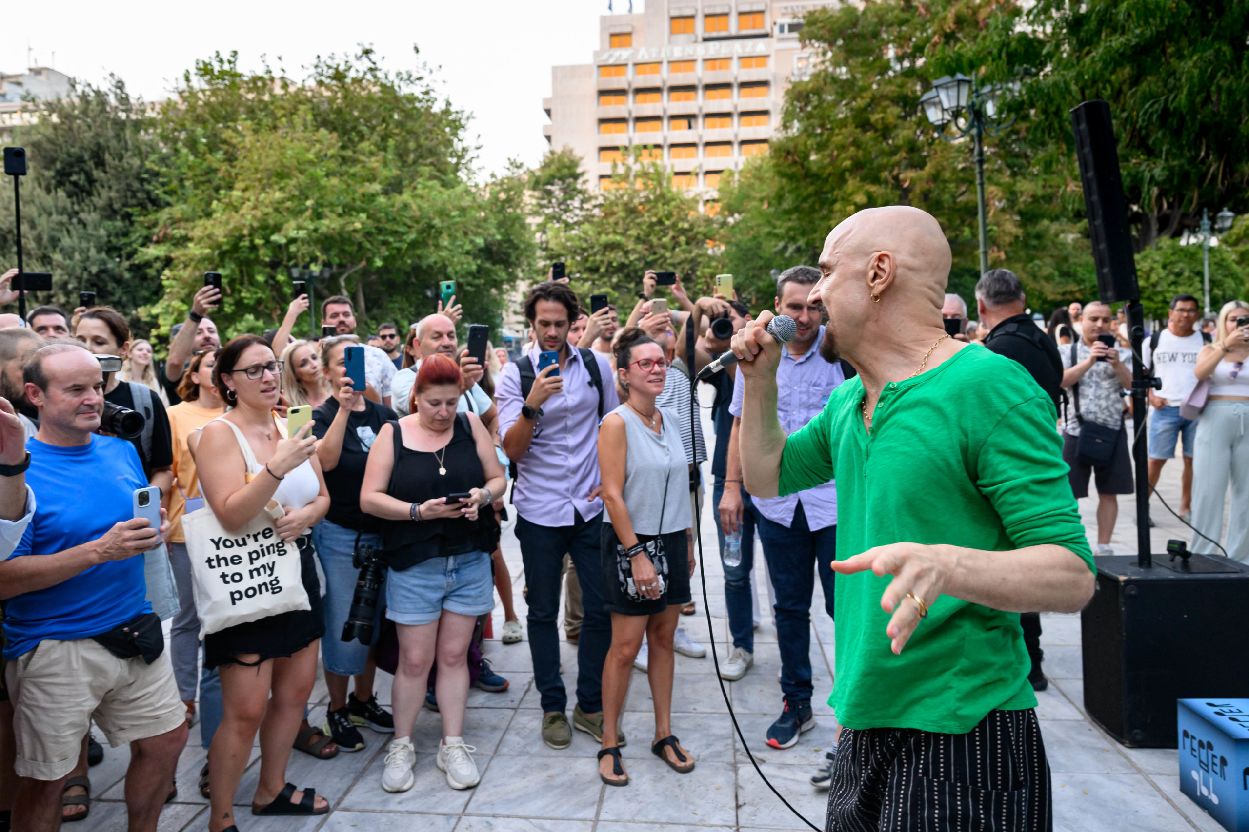 Το αγγλικό ροκ συγκρότημα James από το Μάντσεστερ, μια ημέρα πριν από την επίσημη συναυλία τους στο Δημοτικό Θέατρο Λυκαβηττού, έστησε μια pop-up mini συναυλία στο κέντρο της πόλης, για μια πρώτη γνωριμία με το αθηναϊκό κοινό.
