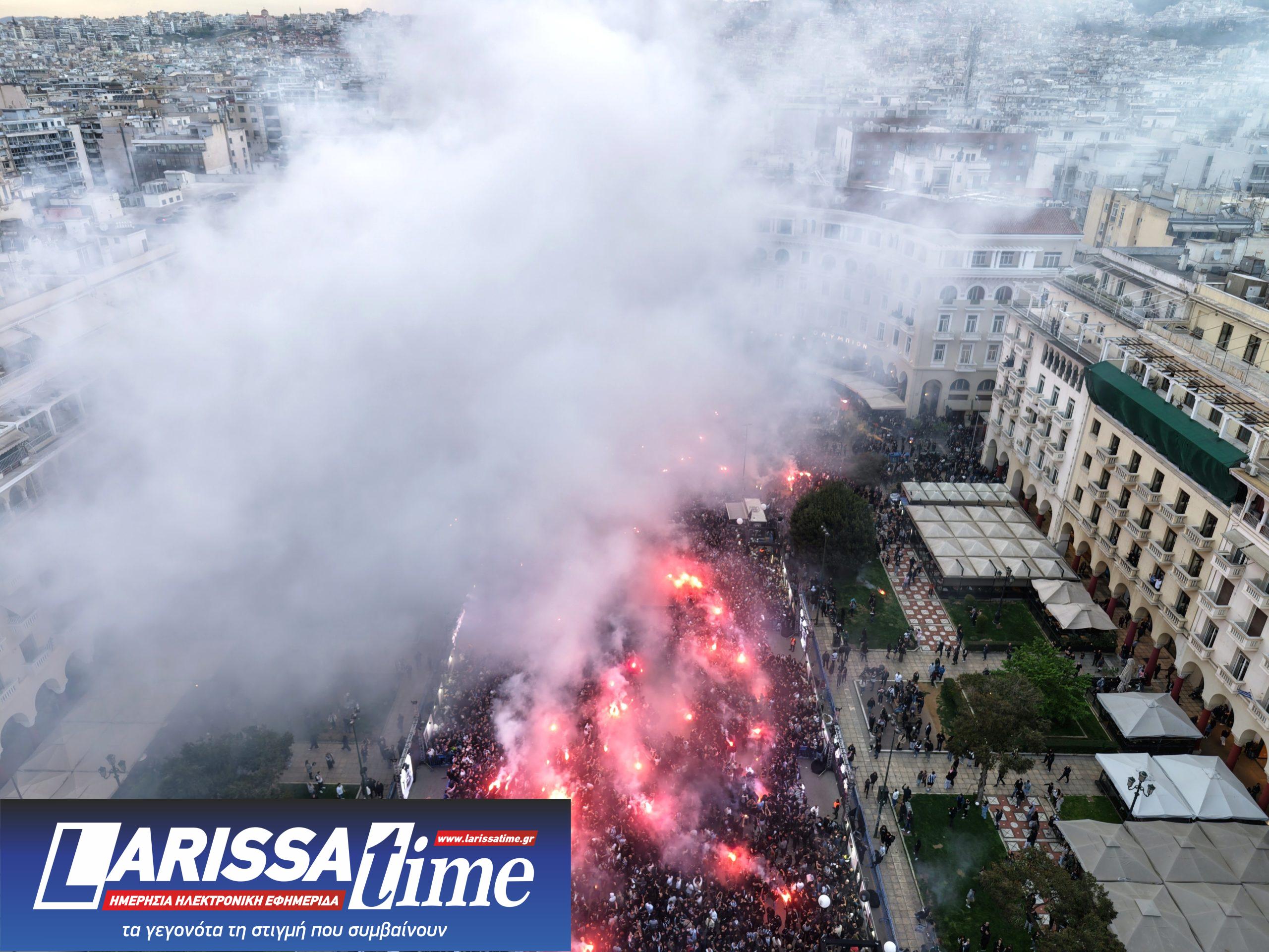 Χιλιάδες φίλοι του ΠΑΟΚ κατέκλυσαν την Πλατεία Αριστοτέλους για να γιορτάσουν τα 100 χρόνια από την ίδρυση του συλλόγου, δημιουργώντας από νωρίς ατμόσφαιρα… γηπέδου στο κέντρο της Θεσσαλονίκης. Οπαδοί κάθε ηλικίας, οικογένειες και φίλοι της ομάδας έδωσαν το «παρών» στη μεγάλη γιορτή.