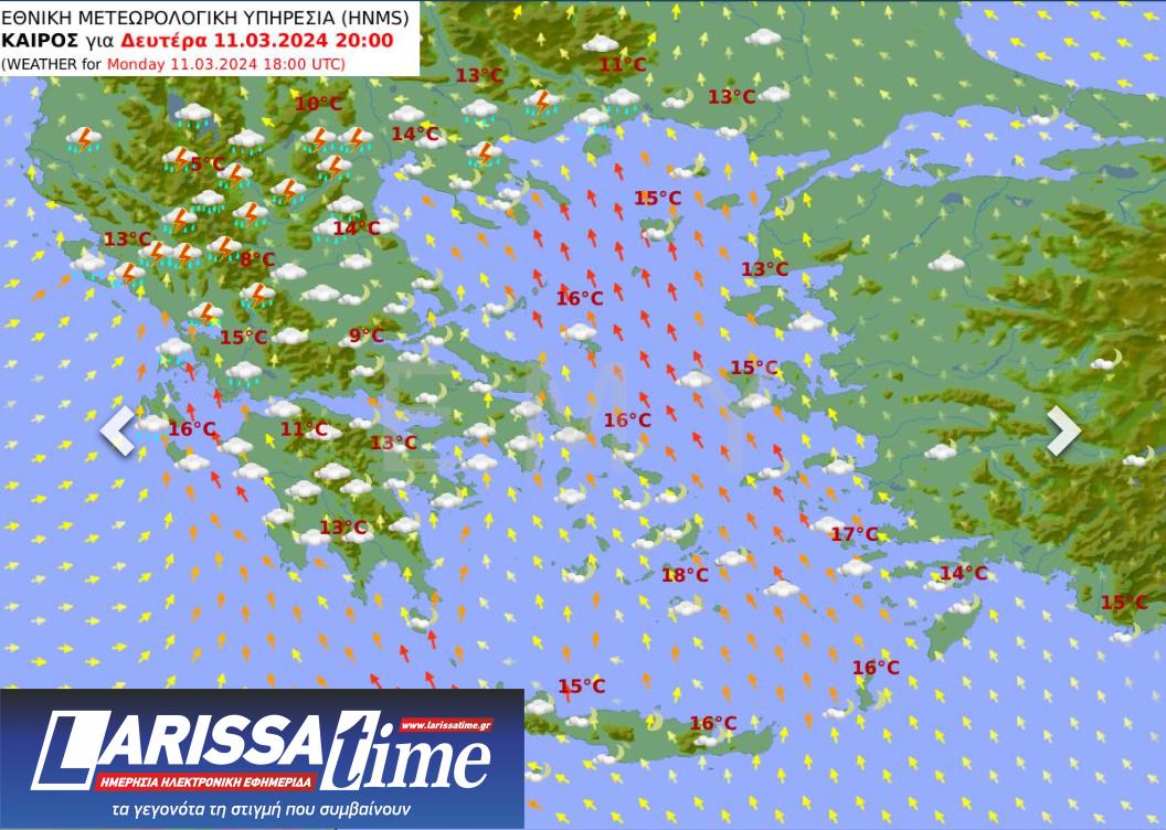 Χάρτης πρόγνωσης καιρού για τη Δευτέρα