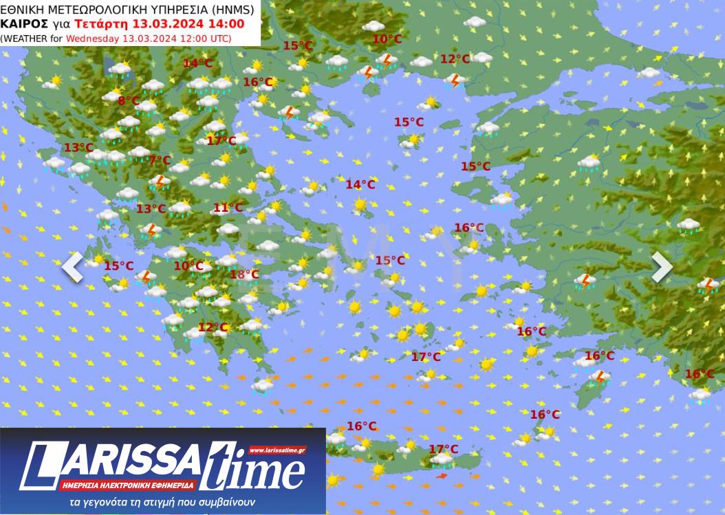 Χάρτης πρόγνωσης καιρού για την Τετάρτη
