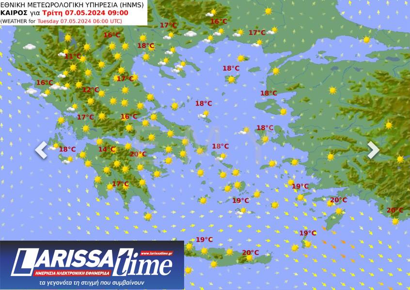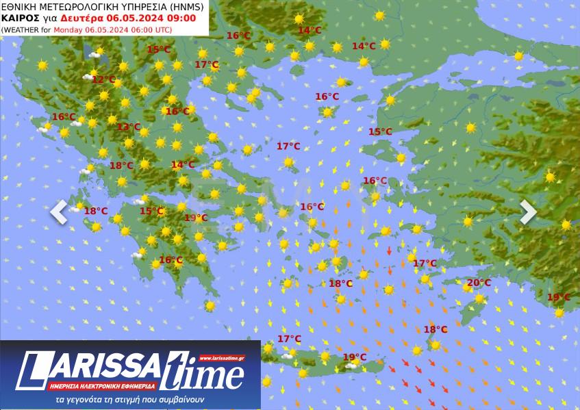 Θερμοκρασία: Από 14 έως 22 και στην Κρήτη έως 23 βαθμούς Κελσίου.