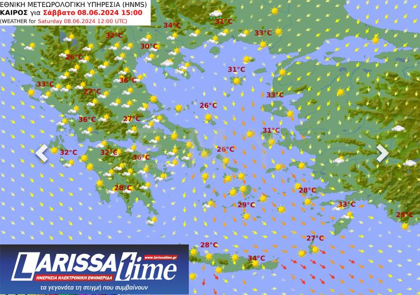 Θερμοκρασία: Από 21 έως 32 και τοπικά στα νότια έως 35 βαθμούς Κελσίου.