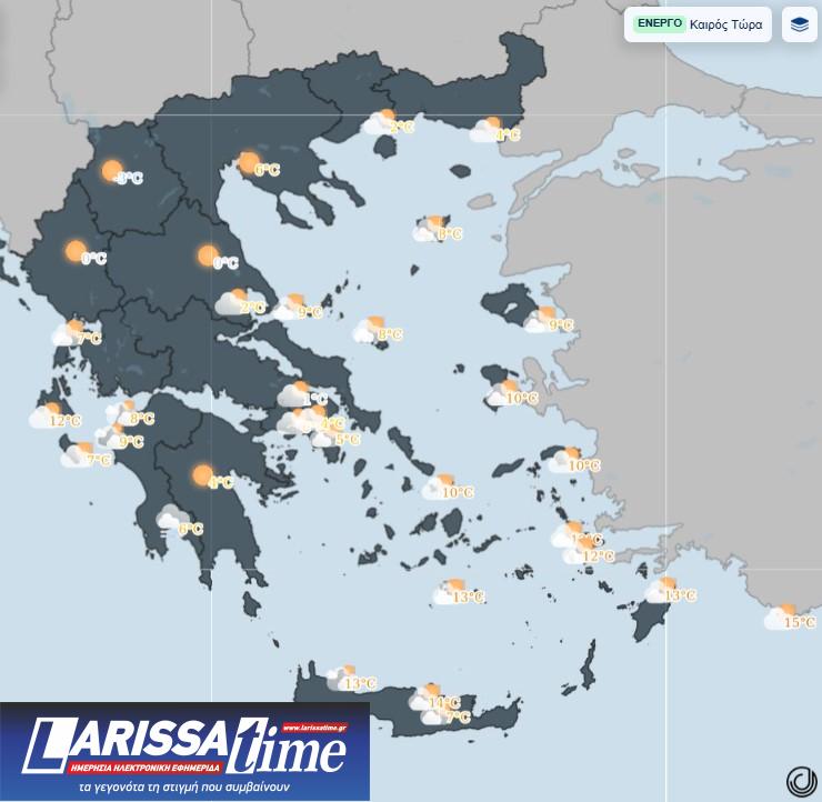 Η θερμοκρασία θα φτάσει στα βόρεια τους 08 με 12 βαθμούς, στις υπόλοιπες περιοχές τους 13 με 15 και τοπικά στα νότια τους 16 με 17 βαθμούς Κελσίου. Τις πρωινές και βραδινές ώρες θα σημειωθεί παγετός κατά τόπους στα βόρεια ηπειρωτικά.