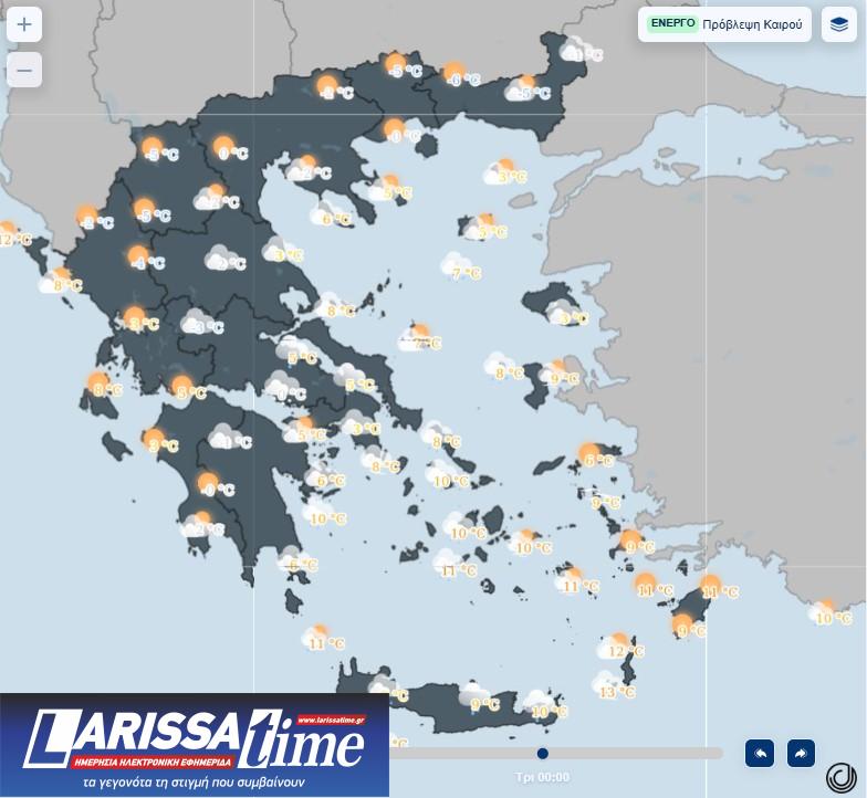 Θερμοκρασία: Από -03 (μείον 3) έως 09 βαθμούς Κελσίου. Στη Μακεδονία 3 με 4 βαθμούς χαμηλότερη.