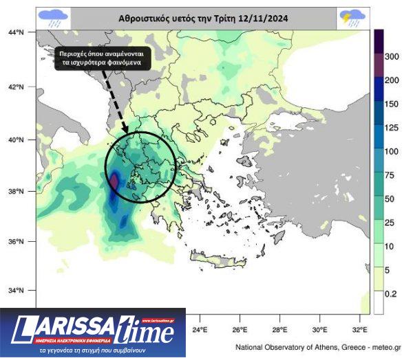 Αύριο Τετάρτη (13-11-2024) όλο το Ιόνιο, την Ήπειρο, τη δυτική Στερεά, τη δυτική Πελοπόννησο και πιθανόν τη Θεσσαλία.