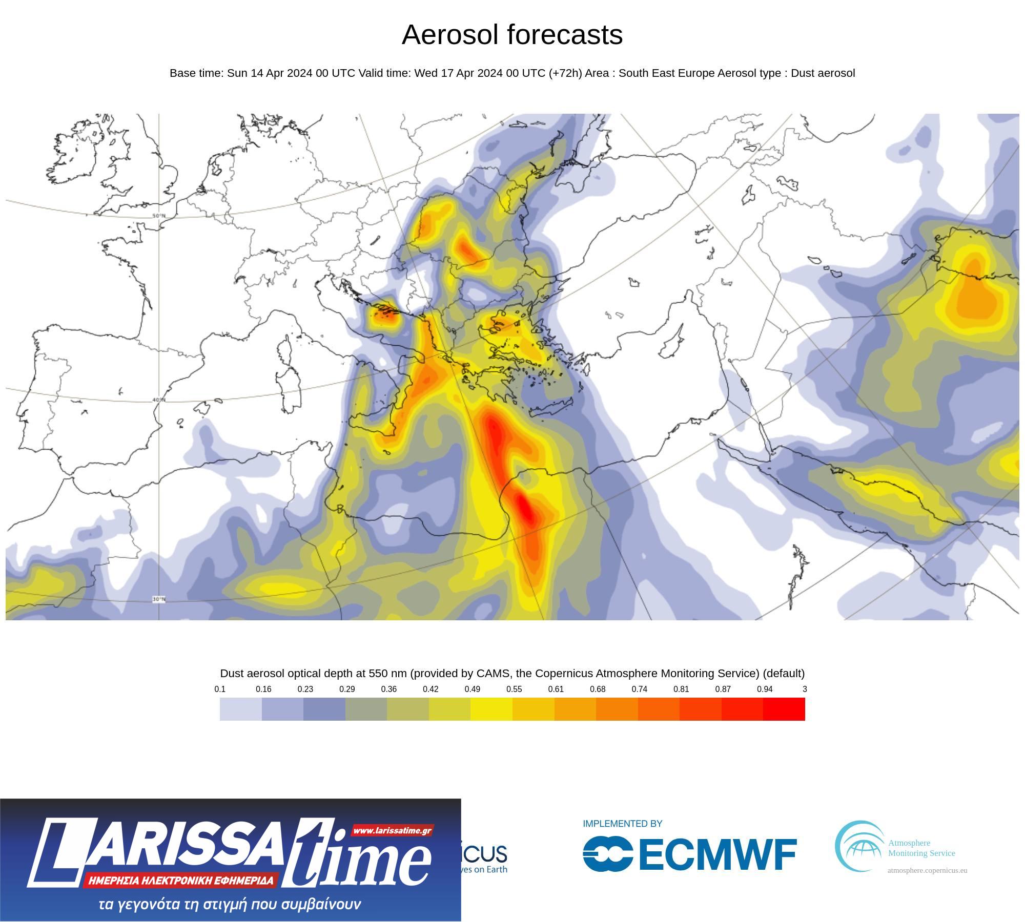 Χάρτης με τη μεταφορά της Σαχαριανής σκόνης