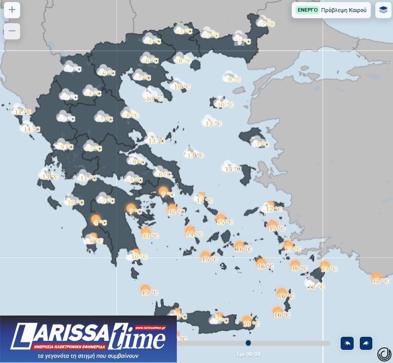 Θερμοκρασία: Από 05 έως 16 βαθμούς Κελσίου. Στη δυτική Μακεδονία θα είναι 3 με 4 βαθμούς χαμηλότερη.