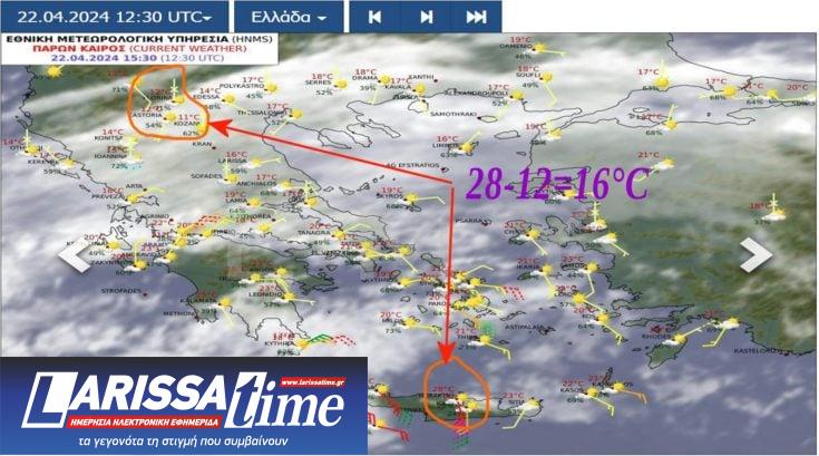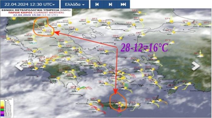 «Πολλές φορές έχουμε δει ανάλογες διαφορές ή ακόμη και μεγαλύτερες των 16°C μεταξύ της Βορειοδυτικής Ελλάδος και Νοτίων Νησιωτικών περιοχών, ειδικά στις περιπτώσεις όπου επικρατούν ισχυροί καταβατικοί νότιοι άνεμοι. Φυσικά δεν αναφερόμαστε σε κάτι “πρωτοφανές” , όπως λ.χ. για τους σημερινούς 28 °C στο Ηράκλειο και τους 11 με 12°C στα βορειοδυτικά», αναφέρει ο κ. Κολυδάς.