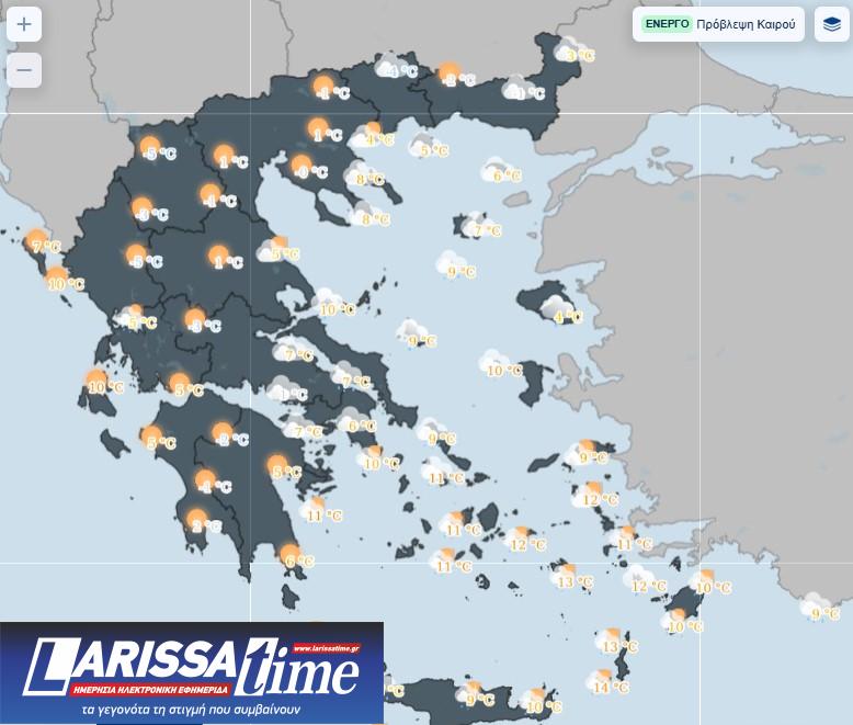 Θερμοκρασία: Από -04 (μείον τέσσερις) έως 10 βαθμούς Κελσίου. Στη δυτική Μακεδονία η ελάχιστη 3 με 4 βαθμούς χαμηλότερη.