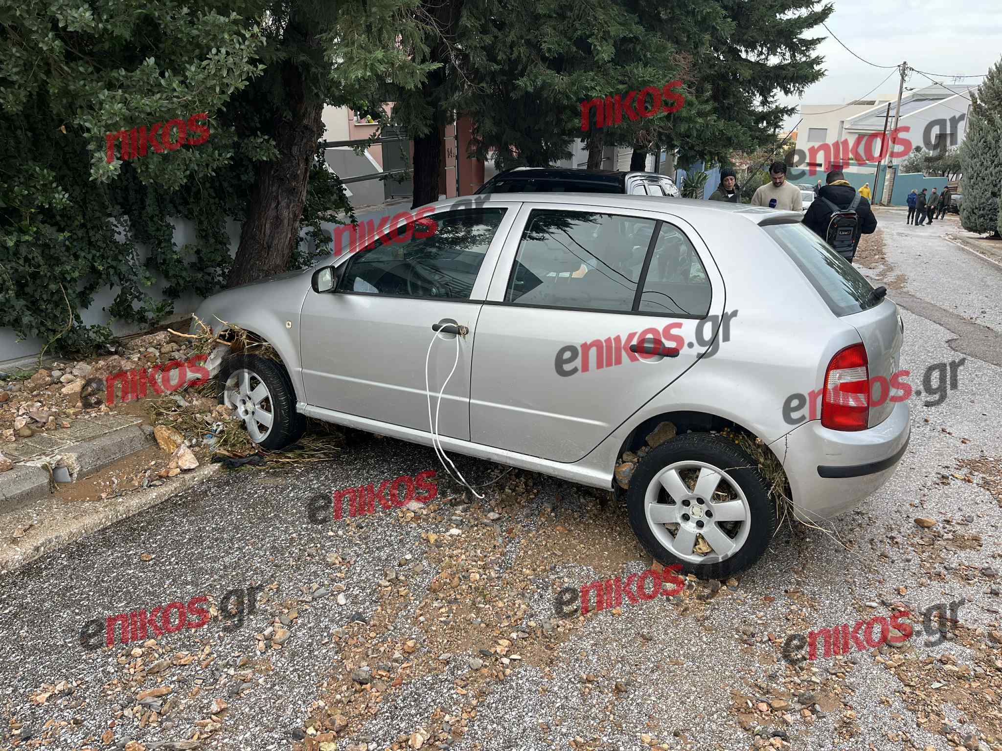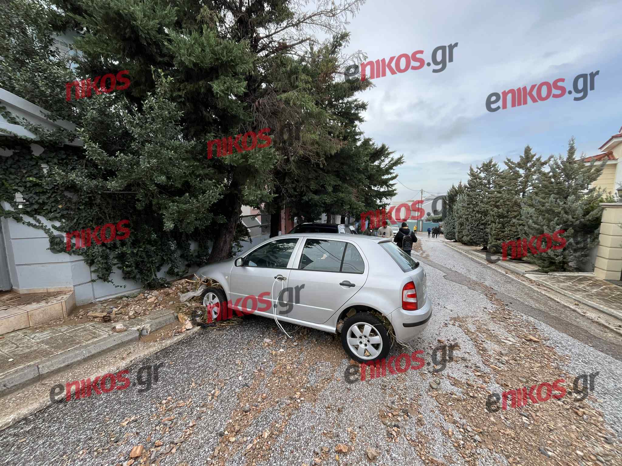 «Κάποια στιγμή, τα νερά έγιναν πολύ ορμητικά και κατέβαιναν πέτρες και χώματα από το βουνό. Το σπίτι μας άρχισε να πλημμυρίζει, οπότε κατέβηκα στον κάτω όροφο προκειμένου να ενημερώσω τον γιο μου, για να μην εγκλωβιστεί. Εκείνη τη στιγμή, άκουσα φωνές από τους γείτονες “καλέστε την Πυροσβεστική και την Αστυνομία”. Βγήκα και εγώ έξω, μαζί με το παιδί μου, και προσπαθούσαμε να καλέσουμε τις αρμόδιες υπηρεσίες, αλλά δεν βρίσκαμε γραμμή. Στη συνέχεια, επικοινώνησα με την Πυροσβεστική, η οποία έφτασε στο σημείο έπειτα από μισή ώρα».