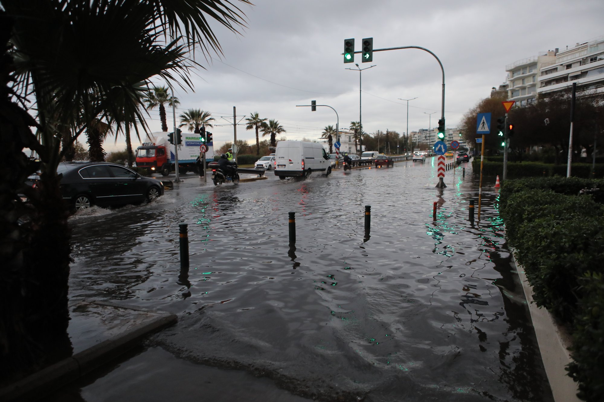 Προβλήματα στην κυκλοφορία των οχημάτων παρατηρήθηκε από νωρίς το πρωί επί της Λεωφόρου Ποσειδώνος, στο Παλαιό Φάληρο, καθώς η έντονη βροχόπτωση που σημειώθηκε καθ΄όλη τη διάρκεια της νύχτας μέχρι και τις πρώτες πρωινές ώρες, πλημμύρισε τους δρόμους.