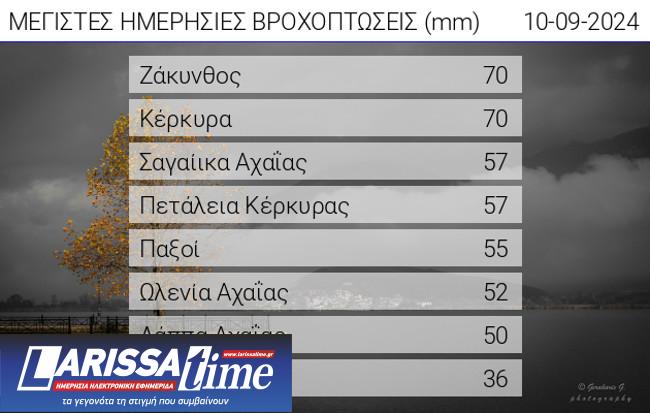 Ζάκυνθος και Κέρκυρα ήταν τα δύο νησιά στα οποία έπεσε μεγάλος όγκος βροχής.
