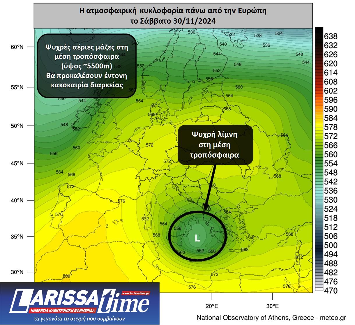 Σύμφωνα με τα προγνωστικά στοιχεία του Εθνικού Αστεροσκοπείου Αθηνών/meteo.gr, σημαντική επιδείνωση αναμένεται να παρουσιάσει ο καιρός από τις βραδινές ώρες της Παρασκευής 29/11 ενώ το διήμερο Σάββατο 30/11 και Κυριακή 01/12 σε ολόκληρη σχεδόν τη χώρα θα επικρατήσει έντονη κακοκαιρία με: