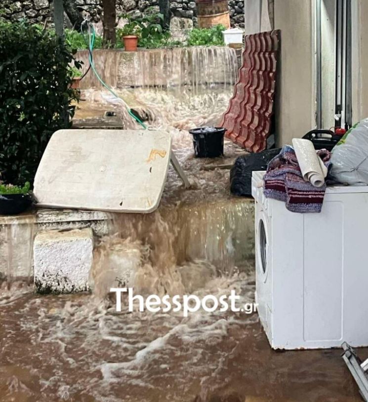 Όπως καταγράφεται στο βίντεο που δημοσιεύει το ThessPost.gr, κατοικίες έχουν γεμίσει λάσπες και φερτά υλικά.