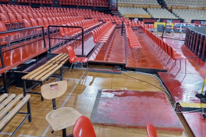Η οροφή του ΣΕΦ στάζει σε πολλά σημεία, με τους «ερυθρόλευκους» να προσπαθούν να βελτιώσουν την κατάσταση, την ίδια στιγμή που προς το παρόν δεν μπορεί να υπολογιστεί το μέγεθος της ζημιάς στο παρκέ, αφού για να γίνει κάτι τέτοιο πρώτα θα πρέπει να απομακρυνθεί το νερό.