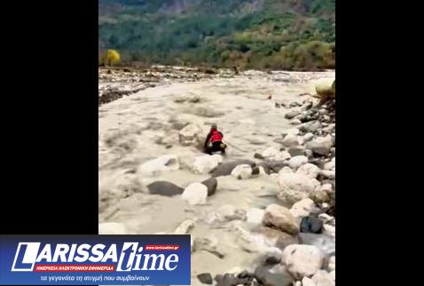 Όπως φαίνεται στο βίντεο, ήταν τόσο ορμητικά τα νερά που εάν ο άνδρας της ΕΜΑΚ δεν ήταν δεμένος και εκπαιδευμένος θα είχε παρασυρθεί από τον χείμαρρο.