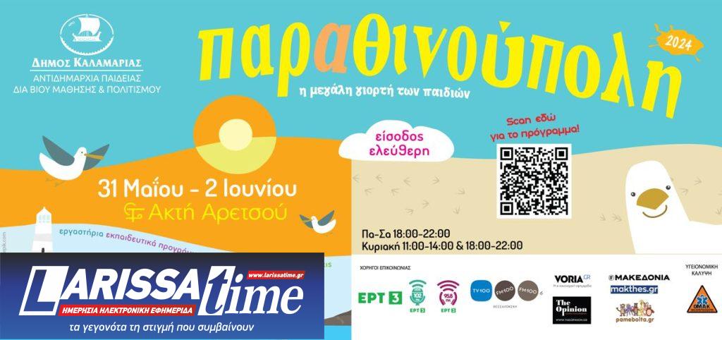 «Ο Δήμος Καλαμαριάς, πιστός στο ραντεβού του με τους μικρούς κατοίκους και επισκέπτες του, διοργανώνει για 22η χρονιά την «Παραθινούπολη», δημιουργώντας δίπλα στη θάλασσα της πόλης μας, μια ξεχωριστή πολιτεία, που στους χρωματιστούς της δρόμους τα παιδιά θα βρουν μουσικές, θα διασταυρωθούν με θεατρικές παραστάσεις, θα συμμετάσχουν σε εργαστήρια, θα γνωριστούν με τις επιστήμες μέσω εκπαιδευτικών προγραμμάτων, μα πάνω απ’ όλα θα συναντηθούν με το παιχνίδι, εκείνο που τους ταιριάζει, εκείνο που πάνω απ’ όλα δικαιούνται…