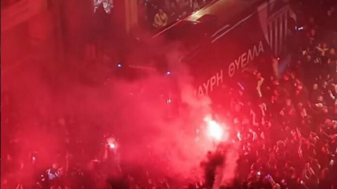Όταν το πούλμαν της αποστολής έφτασε στο σημείο όπου είχε συγκεντρωθεί πλήθος φιλάθλων, οι πανηγυρισμοί κορυφώθηκαν, με τον κόσμο να αποθεώνει τους πρωταγωνιστές της ανόδου.