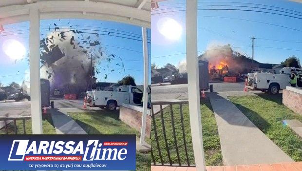 Οι τρομακτικές στιγμές καταγράφηκαν από κάμερες ασφαλείας. Όπως μεταδίδει το cbsnews.com, η έκρηξη σημειώθηκε σε αγωγό αερίου στην East Lewelling Boulevard, νότια του αυτοκινητόδρομου 238.