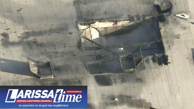 Τουλάχιστον δυο άνθρωποι έχασαν τη ζωή τους και πολλοί άλλοι τραυματίστηκαν χθες Πέμπτη όταν μικρό αεροσκάφος κατέπεσε σε εργοστάσιο στην Καλιφόρνια, στις δυτικές ΗΠΑ, ανακοίνωσε η αστυνομία (στη φωτογραφία από βίντεο των latimes.com, επάνω, η τρύπα στην οροφή του εργοστασίου από την πτώση του αεροσκάφους).