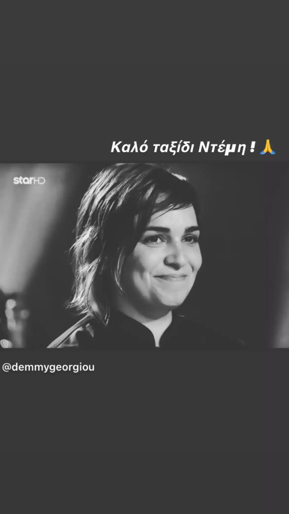 Ο Σταύρος Βαρθαλίτης που υπήρξε συμπαίκτης της στο MasterChef θέλησε να την αποχαιρετήσει μέσα από μια ανάρτηση που έκανε στον λογαριασμό του στο Instagram. Πιο συγκεκριμένα, ο Σταύρος Βαρθαλίτης δημοσίευσε μια φωτογραφία της και έγραψε, «Καλό ταξίδι Ντέμη».