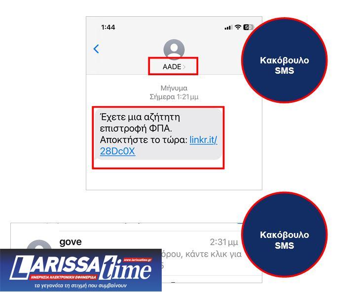 Ακολουθούν προς ενημέρωση και αποτροπή αποδοχής, εικόνες παραπλανητικών μηνυμάτων SMS.