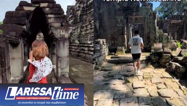 Αγνοόντας τον σεβασμό που απαιτείται για έναν τόσο σημαντικό αρχαιολογικό χώρο, οι παραθεριστές κάνουν σπριντ μέσα στον ιερό ναό στην Καμπότζη, ο οποίος αποτελεί μνημείο παγκόσμιας κληρονομιάς της UNESCO.