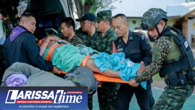 Οι νέες συνοριακές εχθροπραξίες ανάμεσα στις ένοπλες δυνάμεις της Καμπότζης και της Ταϊλάνδης στοίχισαν τη ζωή σε τουλάχιστον έξι αμάχους, σύμφωνα με νεότερο απολογισμό των θυμάτων με βάση πληροφορίες που έδωσε στη δημοσιότητα σήμερα Τρίτη το υπουργείο Αμυνας στην Πνομ Πεν (στη φωτογραφία από Royal Thai Army via Reuters, επάνω, ταϊλανδός στρατιώτης μεταφέρεται τραυματισμένος σε νοσοκομείο).