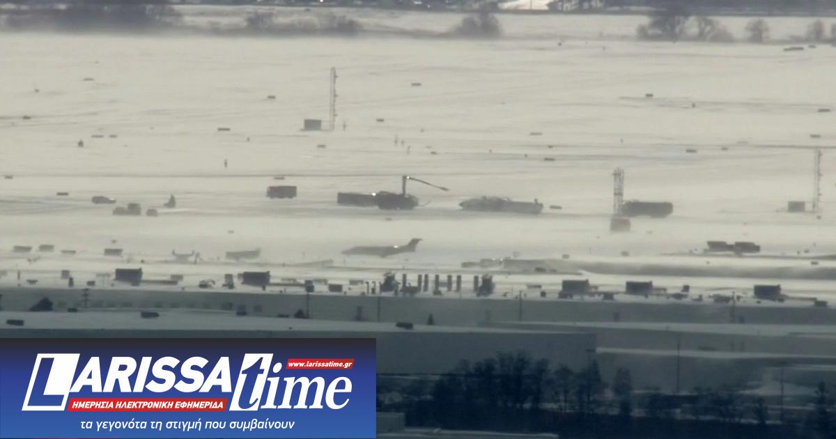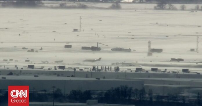 Η καναδική τηλεόραση μεταδίδει βίντεο στο οποίο διακρίνεται το αεροσκάφος της Delta αναποδογυρισμένο στη χιονισμένη πίστα του διεθνούς αεροδρομίου Πίρσον.