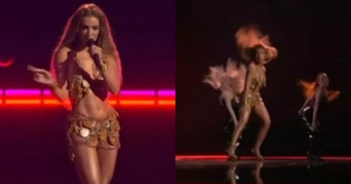 Ανάμεσα σε αυτά είναι και ένα βίντεο το οποίο αναρτήθηκε στο TikTok και μέσα σε λίγες ώρες έχει συγκεντρώσει χιλιάδες προβολές. Σε αυτό βλέπουμε την Ελένη Φουρέιρα την ώρα που κατέβαινε από τη σκηνή της Eurovision. Όπως φαίνεται η τραγουδίστρια στραβοπάτησε, όμως κατάφερε να διατηρήσει την ισορροπία της και δεν έπεσε.