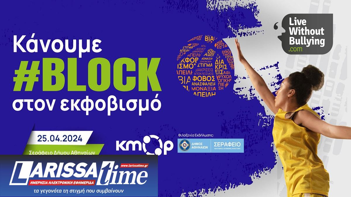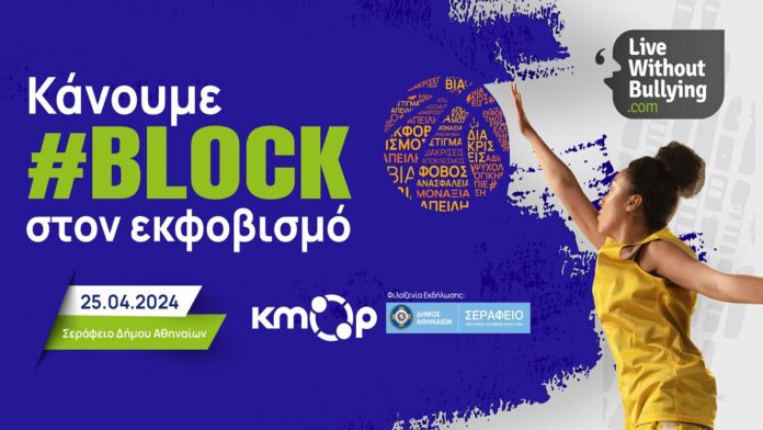 Το ΚΜΟΠ- Κέντρο Κοινωνικής Δράσης και Καινοτομίας, στο πλαίσιο του προγράμματος Live Without Bullying, διοργανώνει ενημερωτική ημερίδα με τίτλο «Κάνουμε #block στον εκφοβισμό», η οποία θα πραγματοποιηθεί την Πέμπτη 25 Απριλίου και ώρα 17:30-20:30, στο Σεράφειο του Δήμου Αθηναίων (Εχελιδών και Πειραιώς 144, Αθήνα).