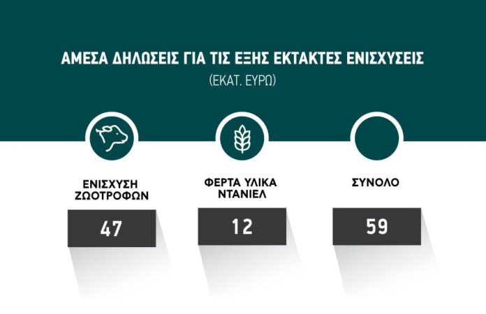 Μεσημέρι Δευτέρας 27 Oκτωβρίου, ο αρμόδιος υφυπουργός σε θέματα κτηνοτροφίας Χρήστος Κέλλας μιλώντας στην εκπομπή «Μomentum» της Ναυτεμπορικής, υποστήριξε πως από «σήμερα» θα ξεκινήσουν να μπαίνουν τα χρήματα για το de minimis ζωοτροφών, με ένα κονδύλι το οποίο προσδιόρισε στα 47 εκατ. ευρώ, και τα φερτά υλικά Ντάνιελ.
