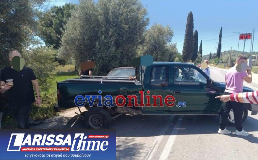 Σύμφωνα με το eviaonline, λίγο μετά τις 14:00, ένα μαύρο τζιπ που κινούνταν από Αμάρυνθο προς Ερέτρια, επιχείρησε για να πραγματοποιήσει προσπέραση αλλά προσέκρουσε στο πίσω μέρος της καρότσας σε ένα φορτηγάκι. Το φορτηγάκι έφερε μερικές σβούρες και ένα άλλο όχημα που κινούνταν από Ερέτρια προς Αμάρυνθο δεν πρόλαβε να φρενάρει και έπεσε πάνω στο φορτηγάκι.