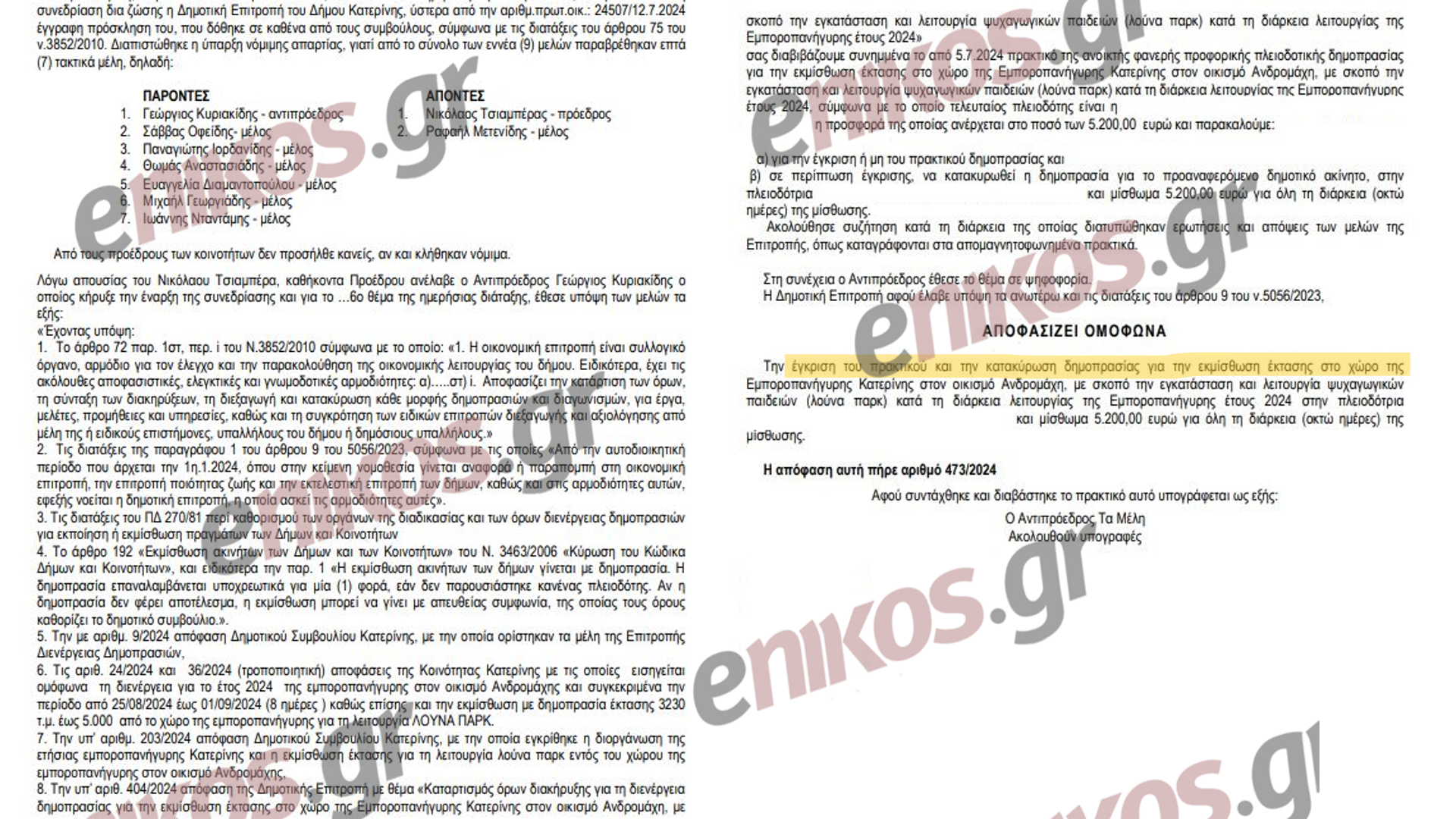 «Με βάση τη διακήρυξη της δημοπρασίας για την εκμίσθωση του χώρου εγκατάστασης και λειτουργίας λούνα παρκ, στη Νεάπολη, στο πλαίσιο της ετήσιας εμποροπανήγυρης Λάρισας 2024 και συγκεκριμένα στα δικαιολογητικά συμμετοχής (αρθ. 6 της διακήρυξης), επί ποινή αποκλεισμού, προβλέπονταν μεταξύ άλλων και “απόσπασμα ποινικού μητρώου, έκδοσης του τελευταίου τριμήνου, από το οποίο να προκύπτει ότι δεν έχει καταδικαστεί σε αδίκημα σχετικό με την άσκηση της επαγγελματικής του δραστηριότητας”.
