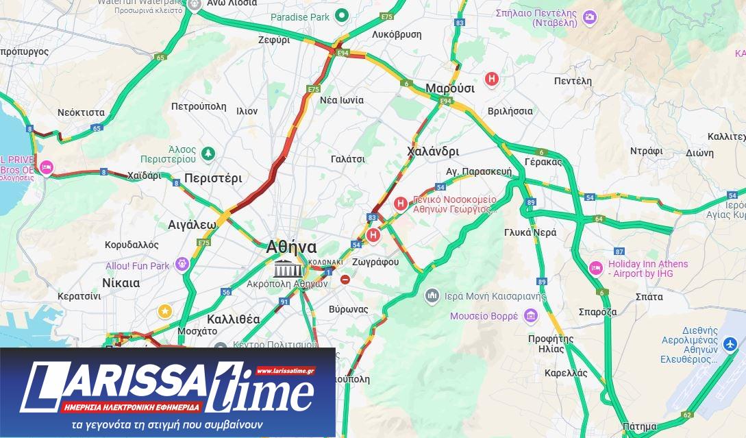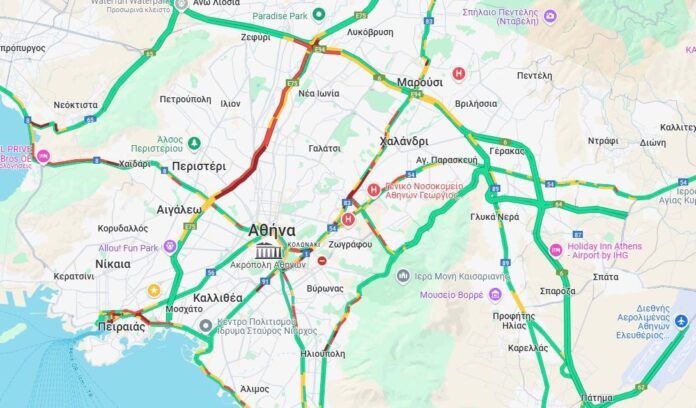 «Έμφραγμα» στην κάθοδο του Κηφισού, ενώ προβλήματα καταγράφονται στους δρόμους γύρω από το λιμάνι του Πειραιά και στην Λεωφόρο Ποσειδώνος στο ρεύμα προς τον Πειραιά.