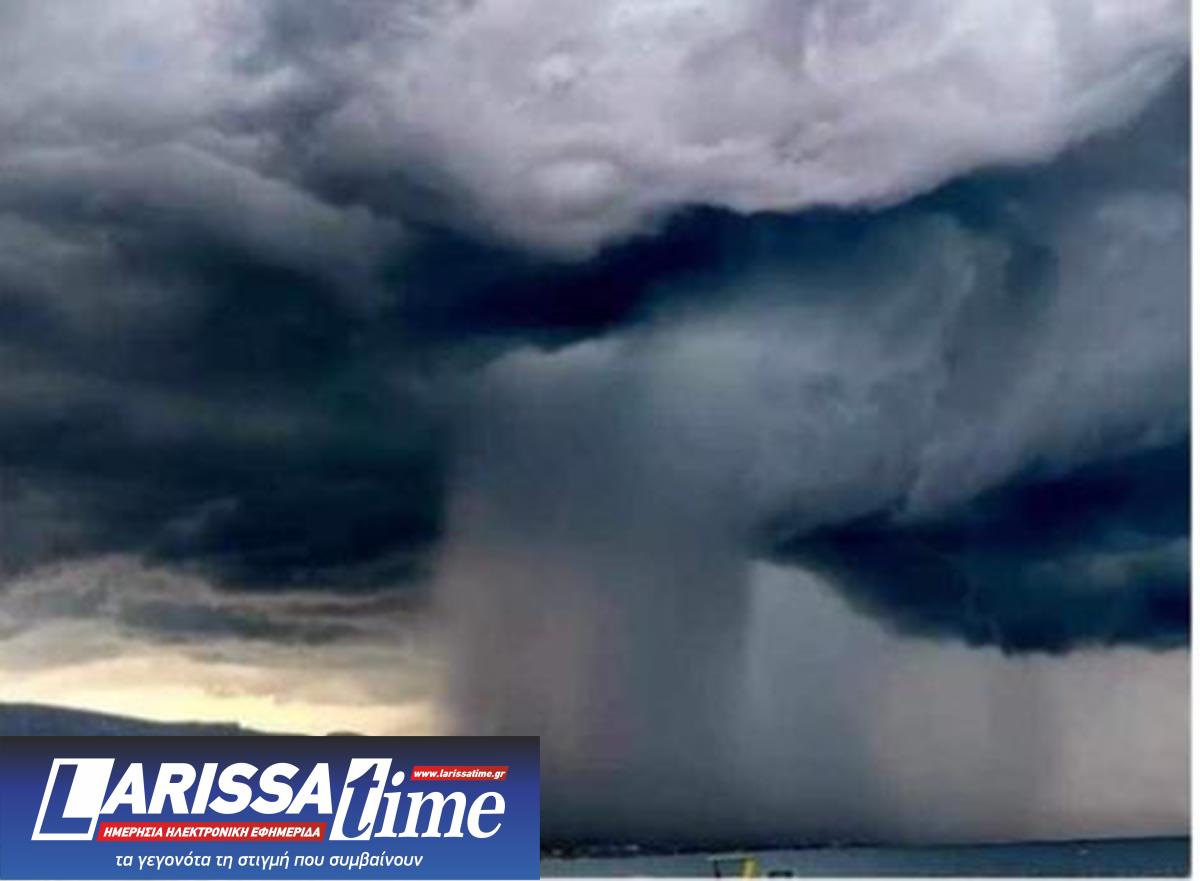 Τεράστια μαύρα σύννεφα έχουν σχηματίσει κάτι σαν «καταρράκτη» πάνω από τη θάλασσα και σε απόσταση αναπνοής από την παραλία.