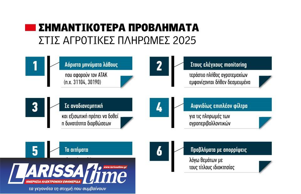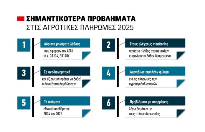 «Σε συνέχεια ανακοινώσεων που έχουν αναρτηθεί στην επίσημη ιστοσελίδα του Υπουργείου Αγροτικής Ανάπτυξης και Τροφίμων (ΥΠΑΑΤ) σχετικά με διορθώσεις που μπορούν να διενεργούν οι δικαιούχοι παραγωγοί καθώς και μετά την ολοκλήρωση από μία σειρά πληρωμών τον Δεκέμβριο του 2025 για διάφορα καθεστώτα ενισχύσεων, θα θέλαμε να σας ενημερώσουμε για τα προβλήματα που έχουν προκύψει τόσο με την μη τήρηση των χρονοδιαγραμμάτων που ανακοινώθηκαν όσο και επί των προβληματικών πληρωμών λόγω συγκεκριμένων κωδικών λάθους από τον διασταυρωτικό πληρωμής του Δεκεμβρίου.